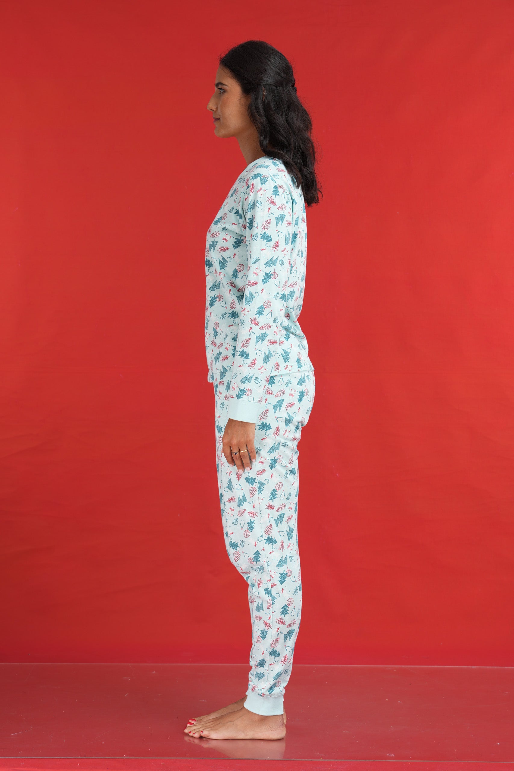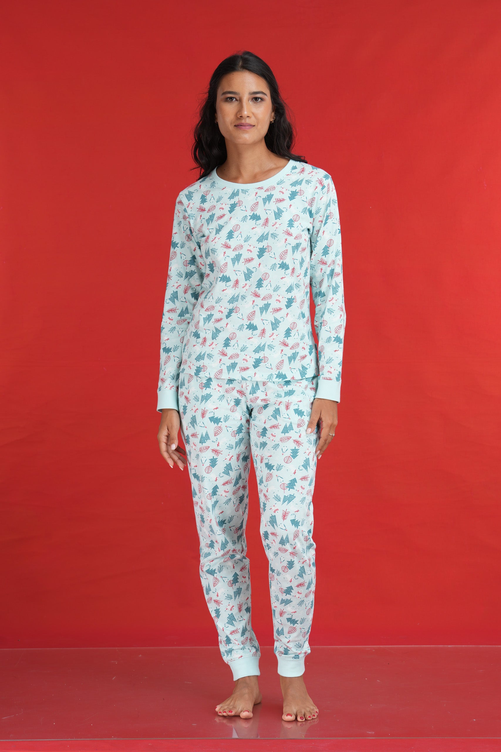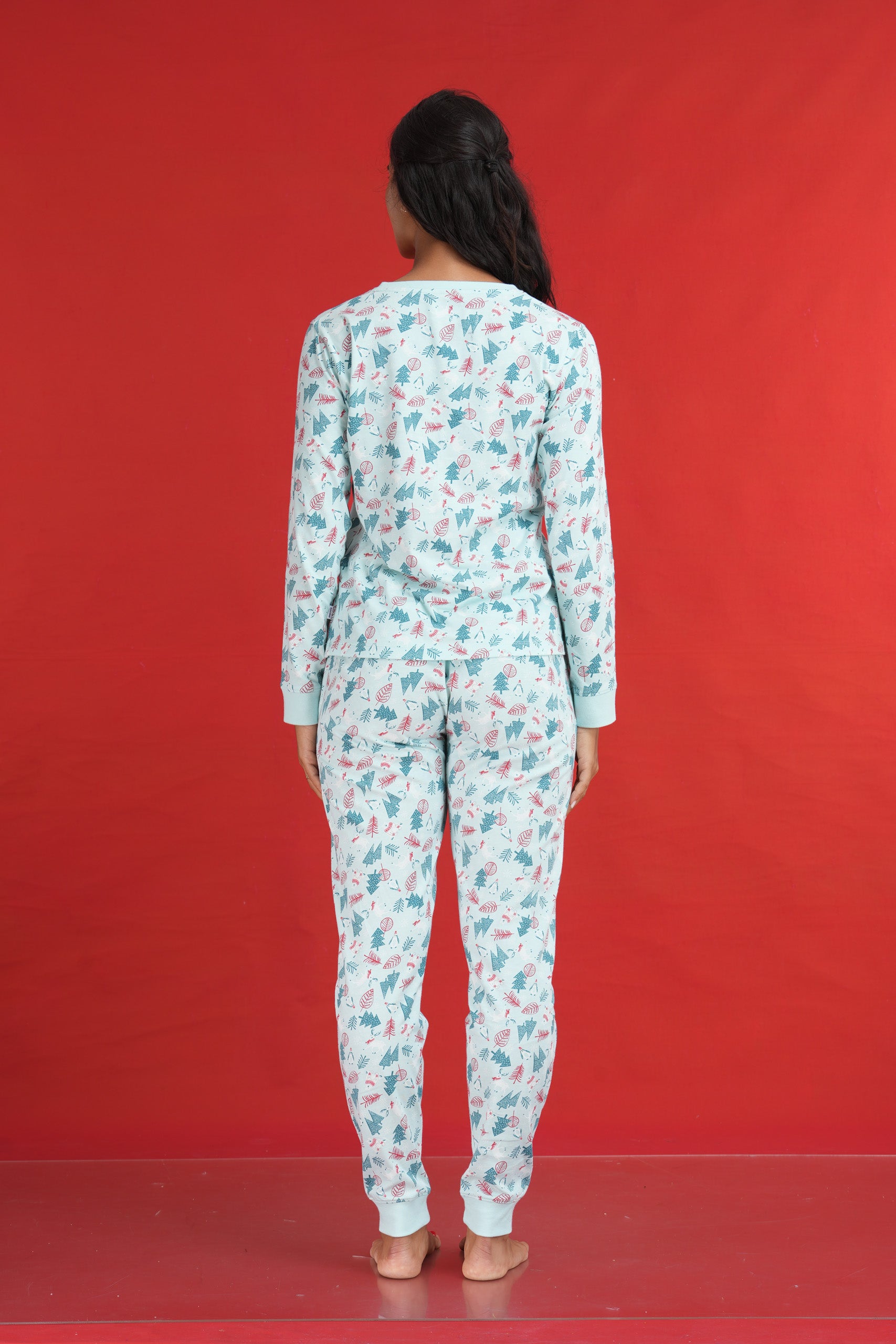 PYJAMA SET WITH A SINGLE JERSEY ALL OVER PRINTED LONG SLEEVE TOP AND LONG PANT WITH SELF FOLDED ELASTICATED WAIST BAND.