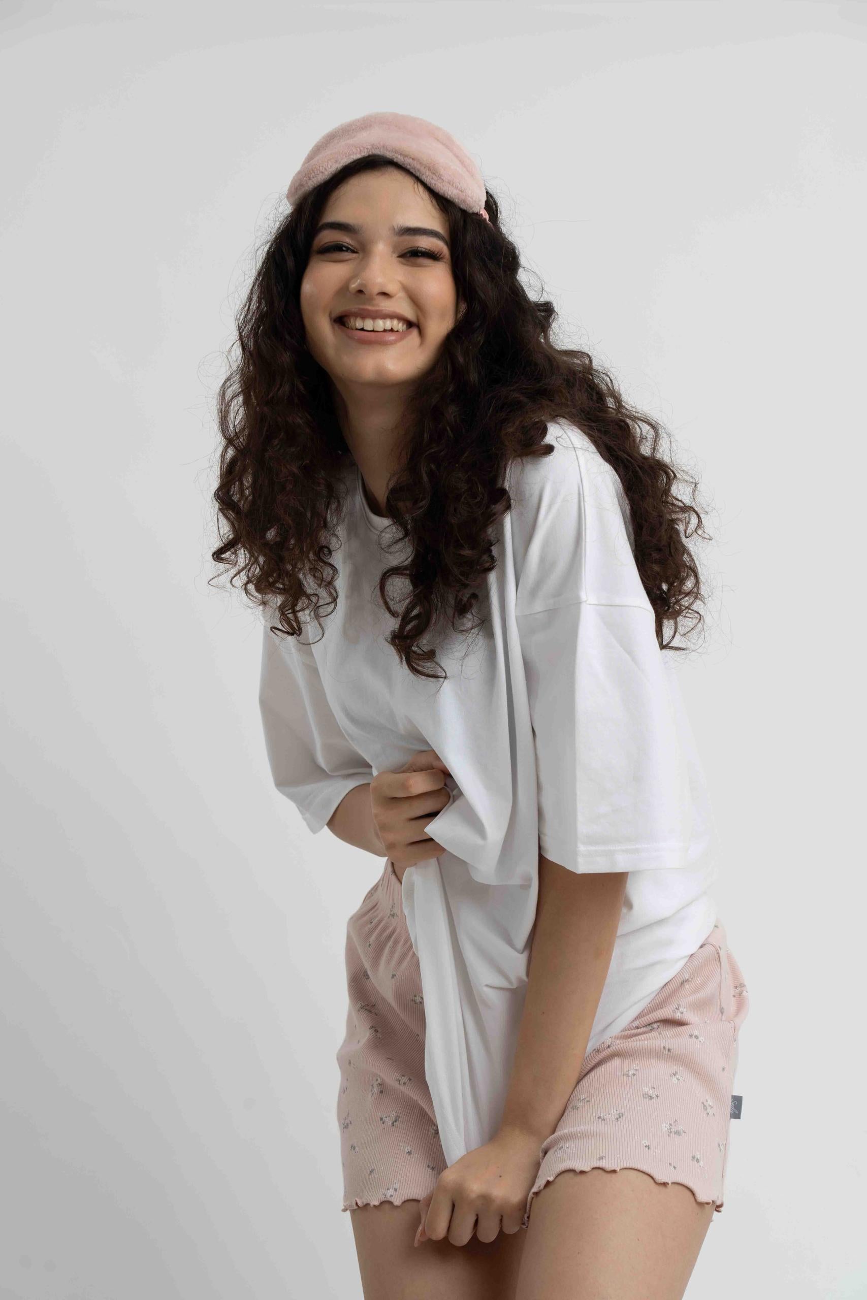 RIB PINK FLORAL SHORT