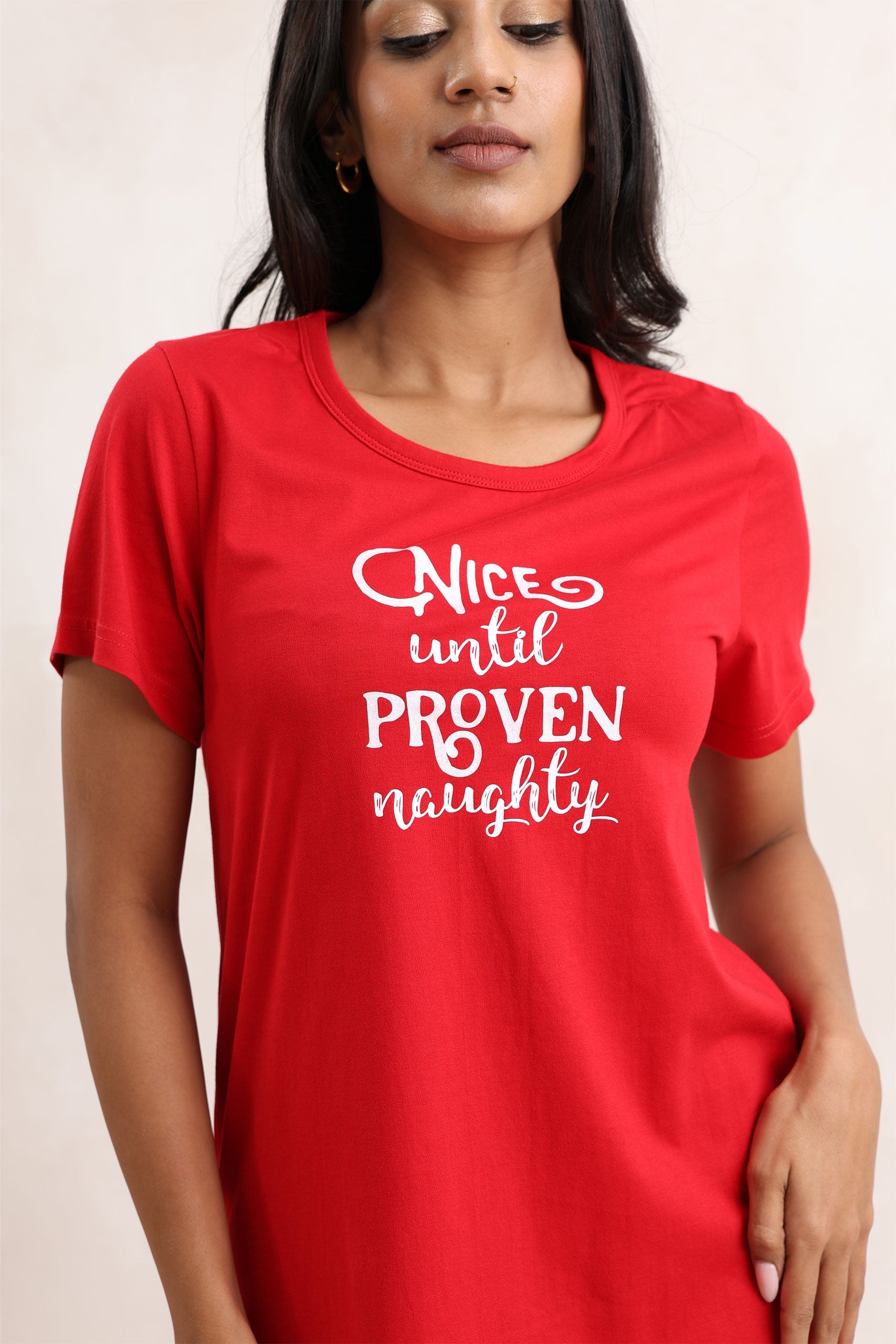 This sporty, short-sleeve nightdress is crafted from soft, solid cotton jersey for a relaxed and comfortable fit. Featuring a crew neck and a stylish chest print with rubber and glitter detailing, it’s perfect for a cozy night’s sleep or lounging in style.