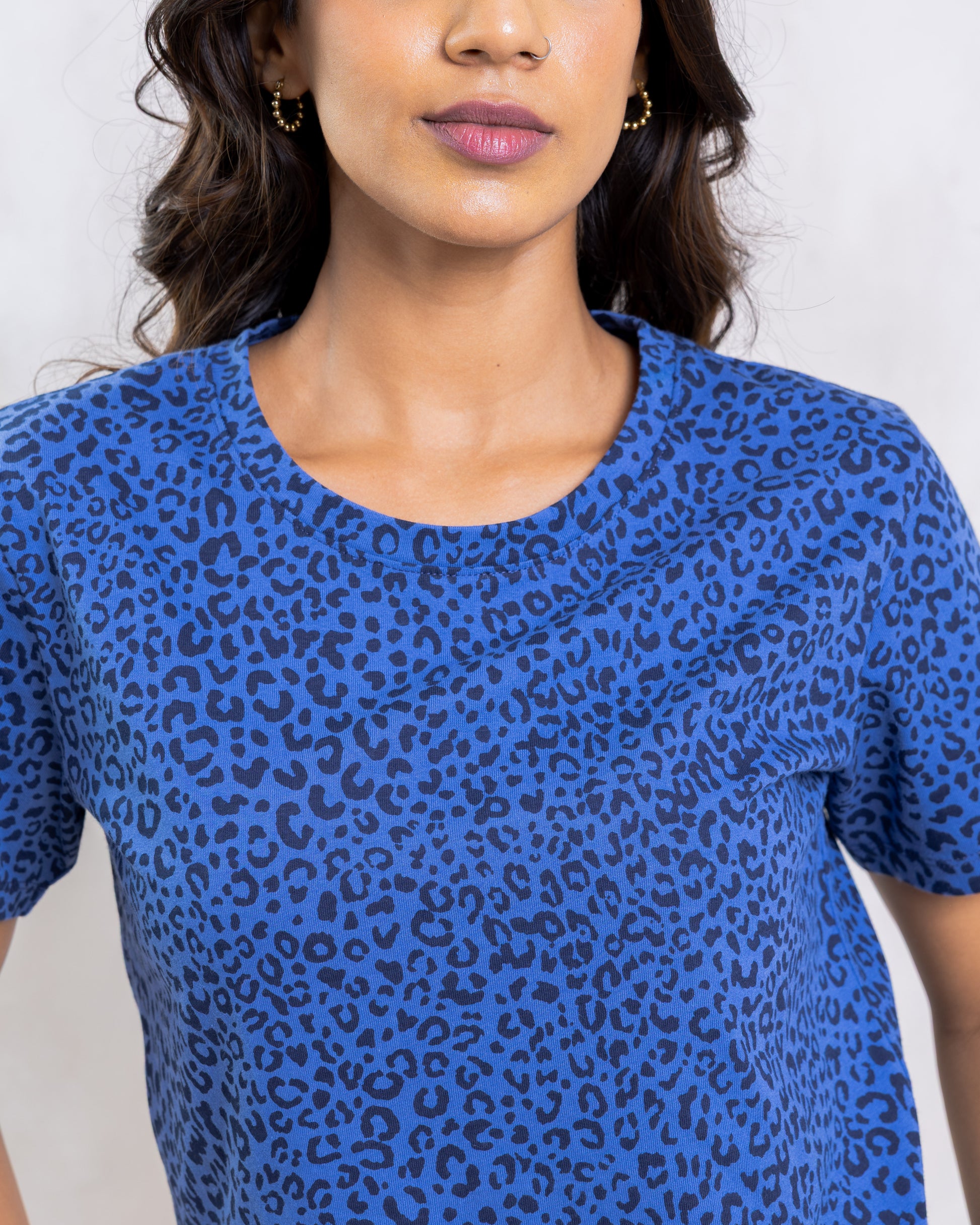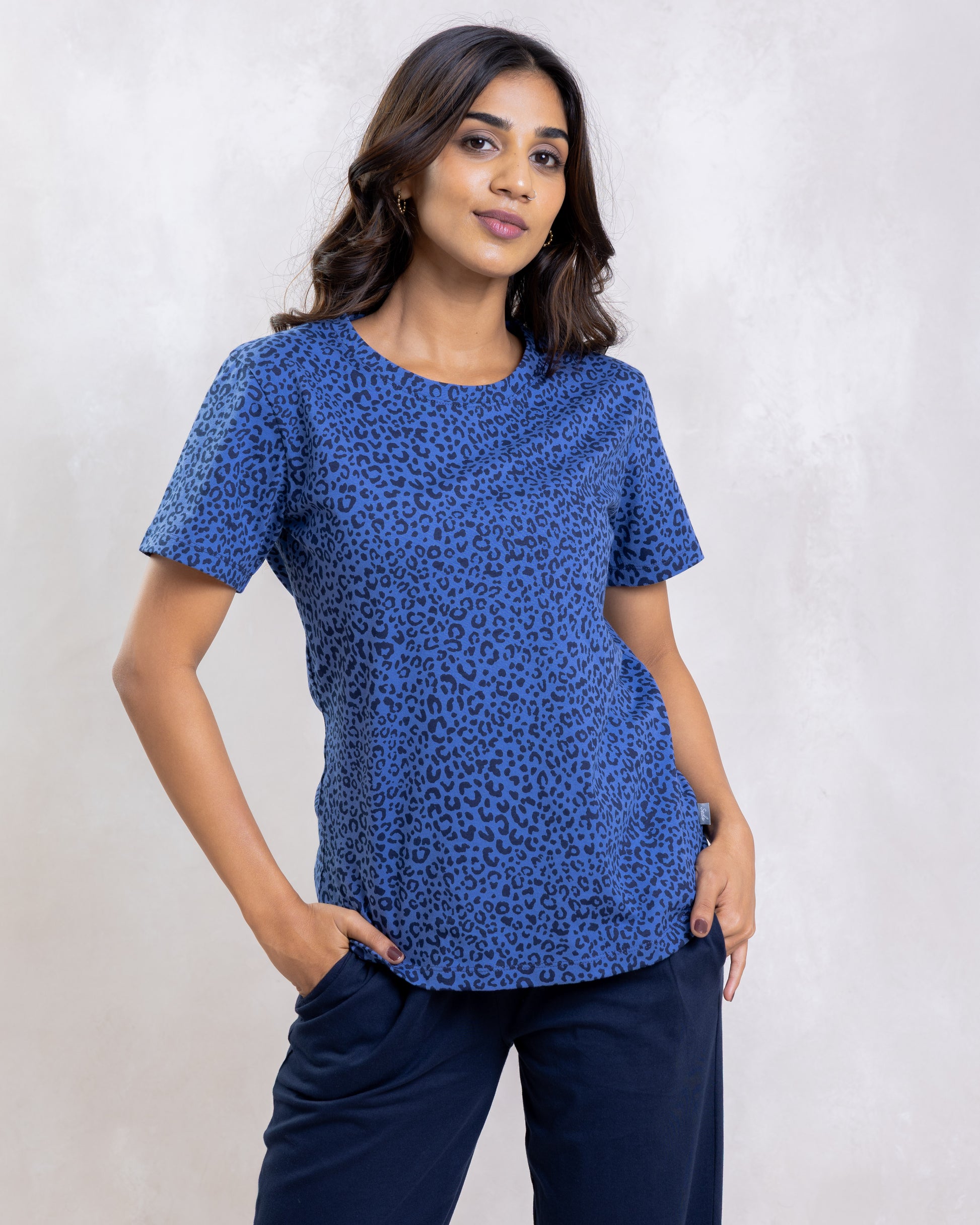 The SEDA Cotton Blue Leopard Lounge Set is crafted for women who value comfort and style in their sleepwear. Made from 100% breathable cotton, this lightweight set is soft on the skin and gentle for all-night wear.
