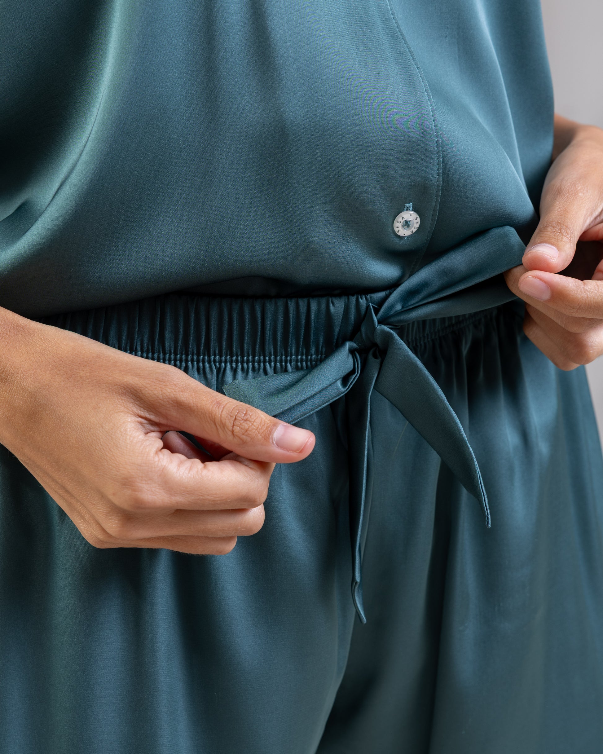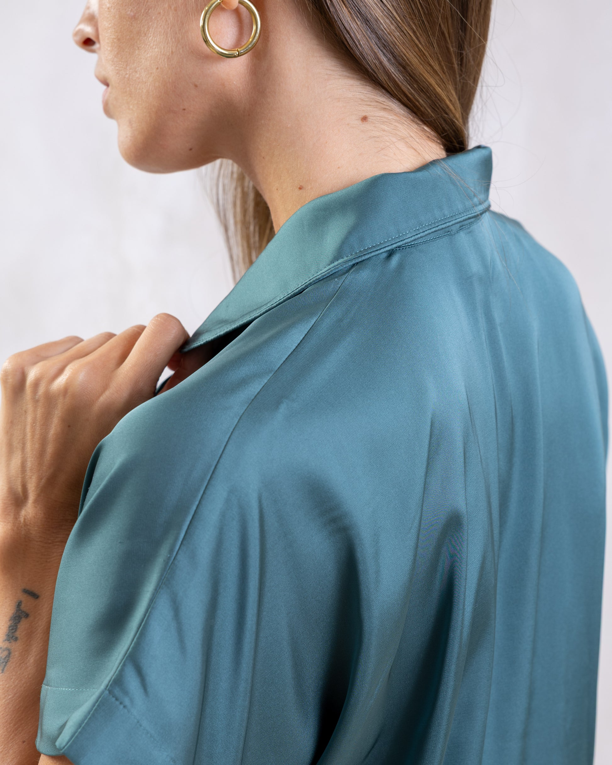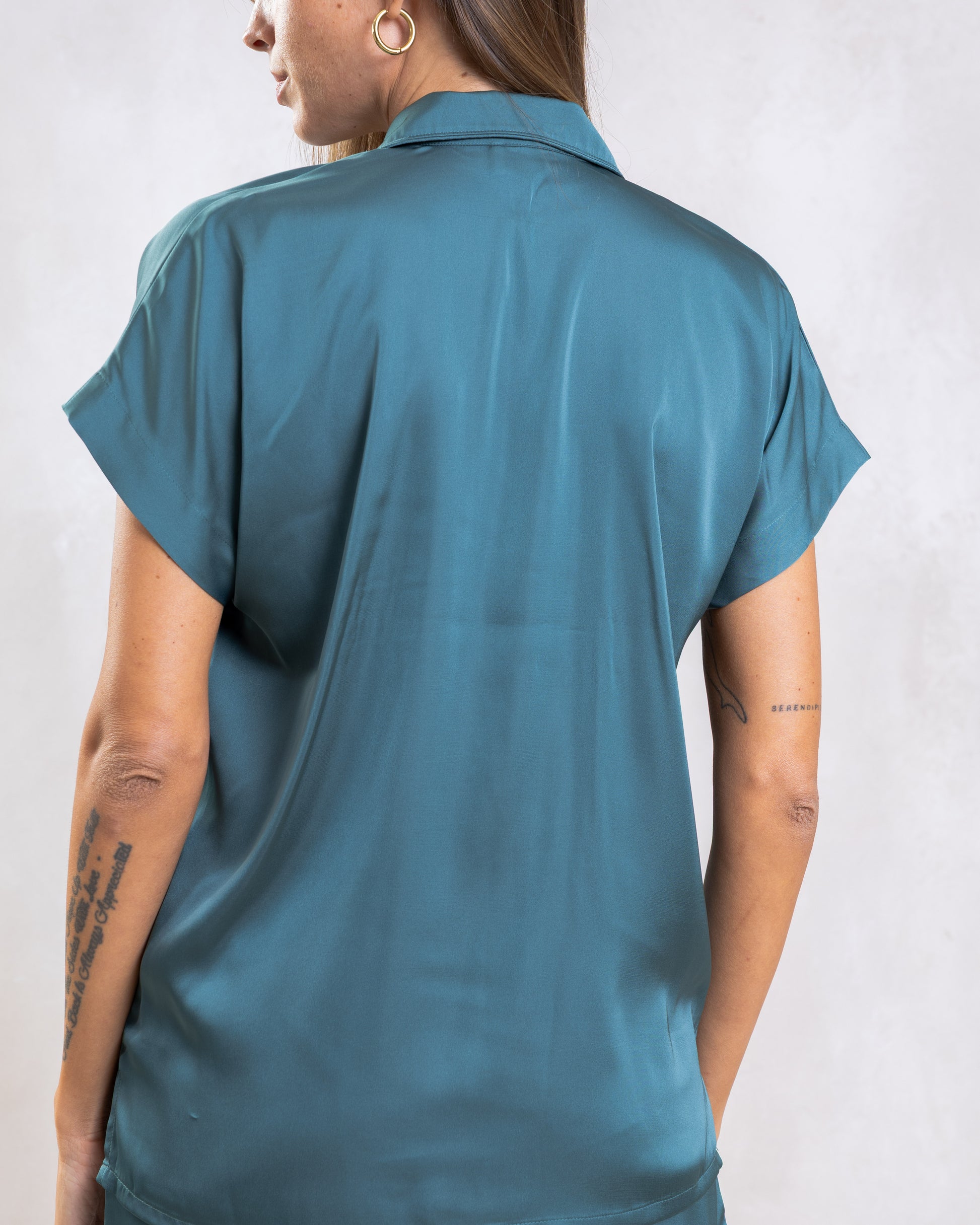 TEAL LADIES SATIN SHORT SLEEVE SHORT SET
