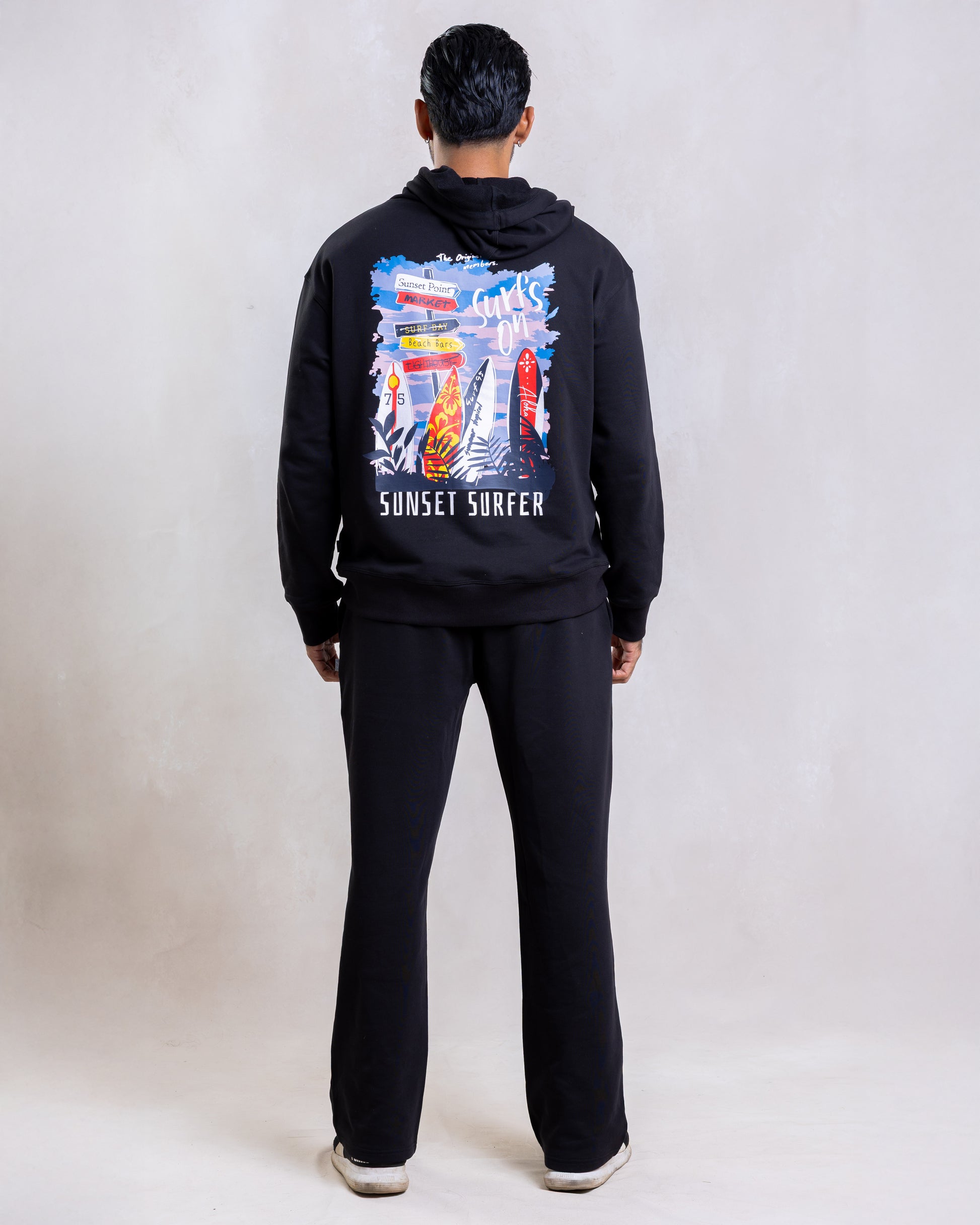 SURF'S ON UNISEX RELAXED BLACK HOODIE ONLY