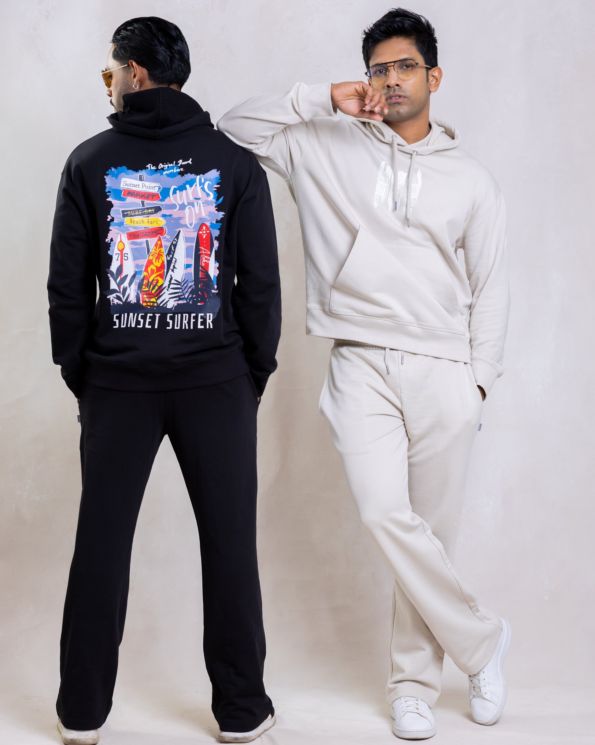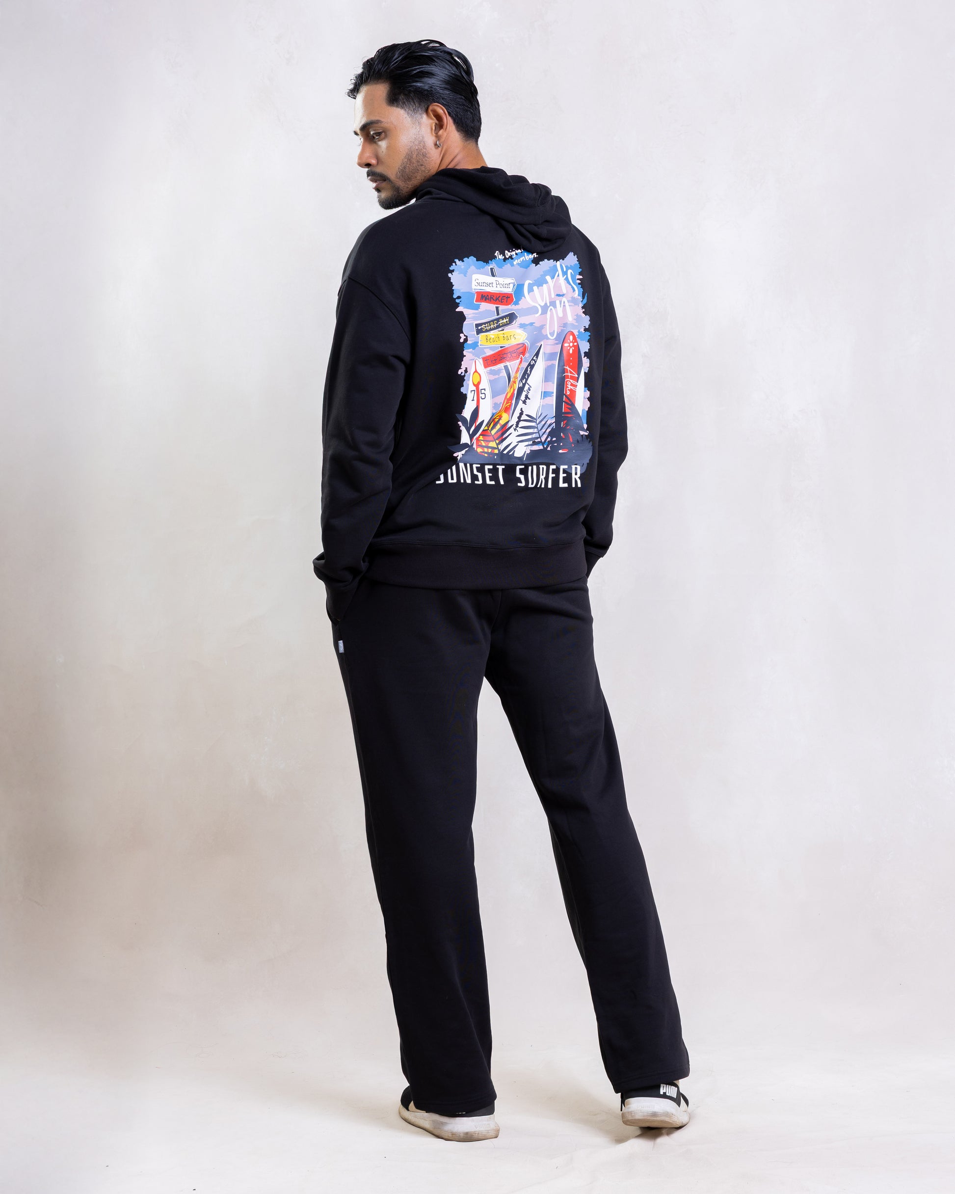 Step into laid-back vibes with our Surf’s On Relaxed Black Hoodie—a modern essential with a bold coastal twist. Featuring a vibrant surf-inspired graphic on the back, this hoodie channels the spirit of beach days, sunsets, and effortless style. Made from a premium terry blend of 51% conventional cotton and 49% BCI (Better Cotton Initiative) cotton, it offers breathable comfort while supporting more sustainable cotton farming.